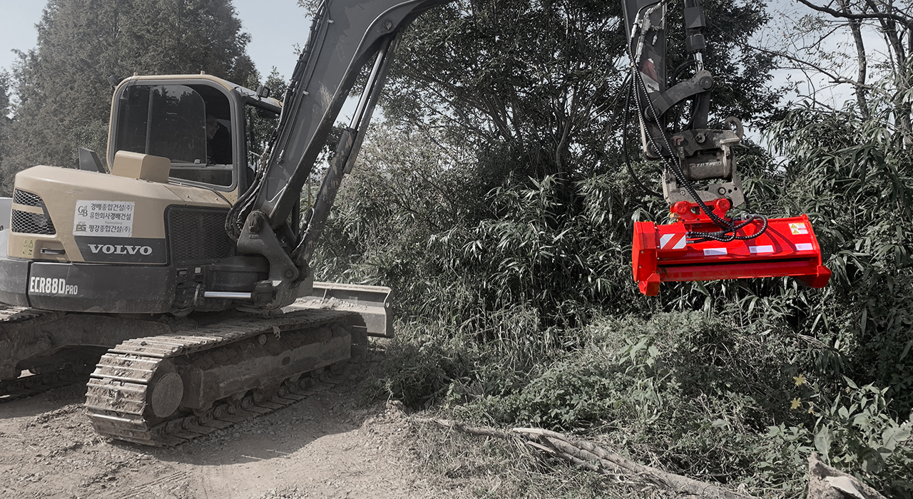 - HARDOX500タフ8Tミリング加工で刃を加工し、長時間切断性能を維持します。細い雑木除去にも対応可能です。
