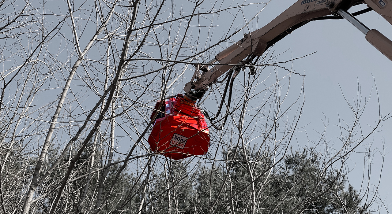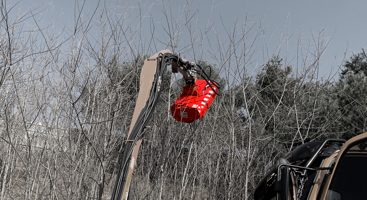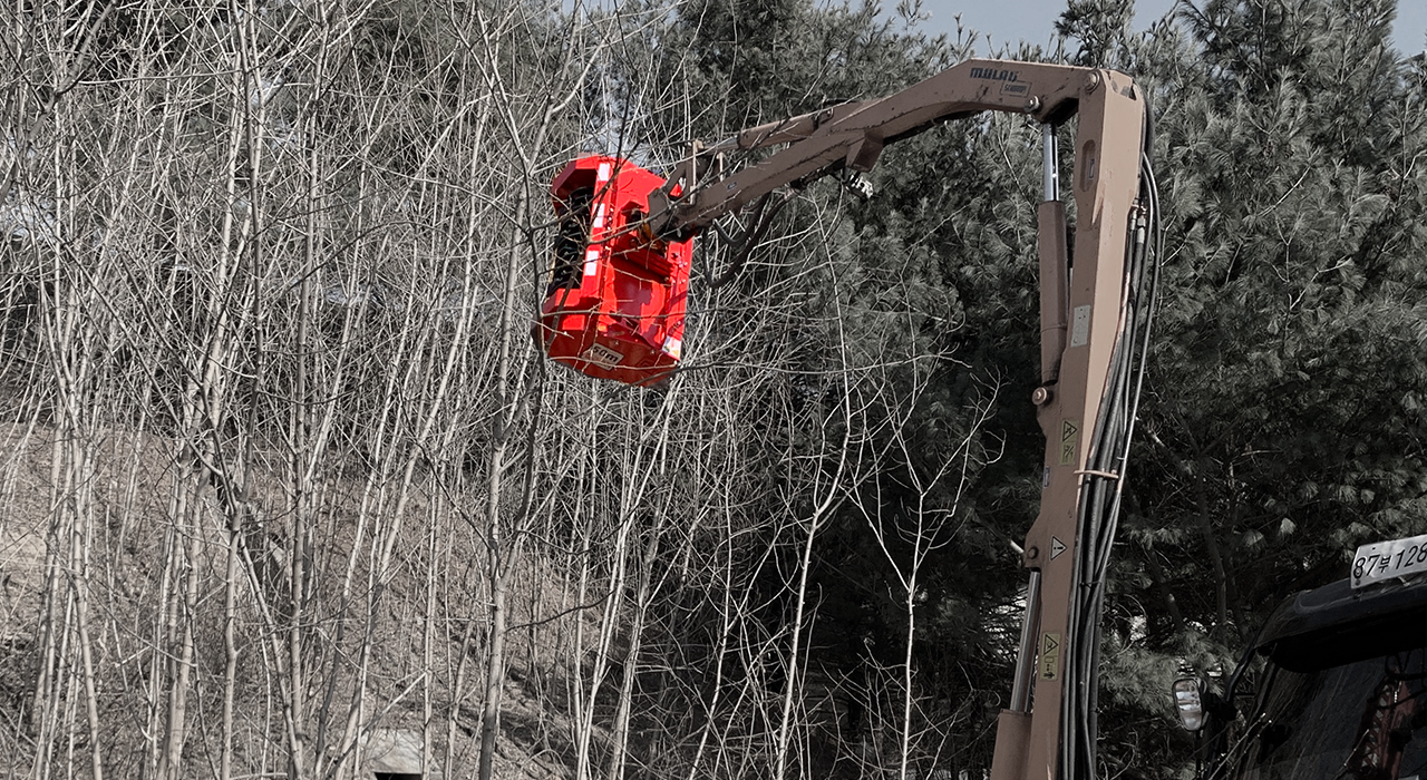道路沿い作業用で、木材破砕・除草作業など、さまざまな現場で使用可能です。鉋方式の破砕刃。